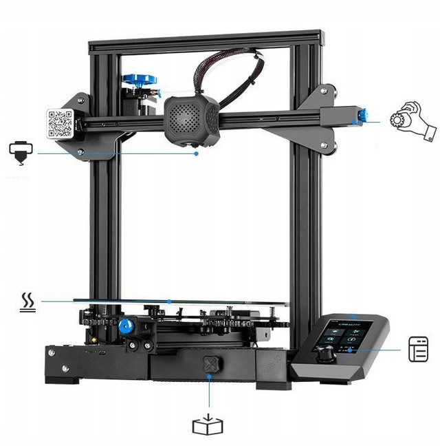 Зручний і простий у використанні та сповнений функцій 3D-принтер Ender 3 V2 дає змогу створювати практичні та цікаві тривимірні об'єкти для дому або освітніх потреб. Пристрій характеризується міцною конструкцією, має вбудований інтуїтивно зрозумілий дисплей і сумісний із широким спектром ниток. Ender 3 V2 пропонує оптимальну робочу зону та дає змогу друкувати всі види проєктів із незмінно високою якістю.