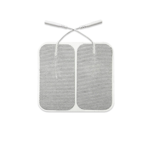 У набір входять 2 електроди розміром 5 х 10 см . Вони мають кабель, який дозволяє легко підключитися до пристрою TENS. Електроди не слід накладати або використовувати на подразненій шкірі, а якщо під час використання виникають дискомфорт або небажані симптоми, негайно відключіть пристрій від джерела живлення.