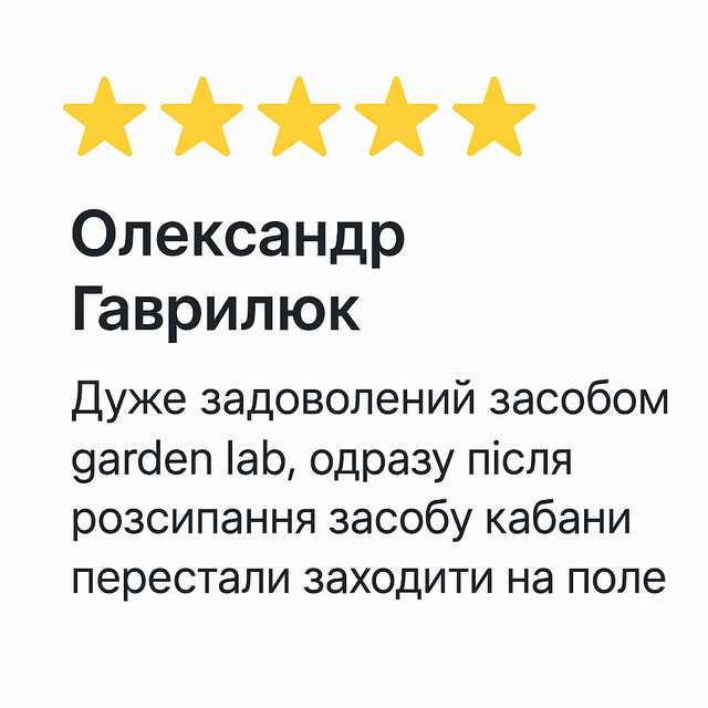 Завдяки засобу Garden Lab, Ви зможете ефективно захистити Ваш урожай та ділянку від більшості диких небажаної фауни, які живуть в Україні !